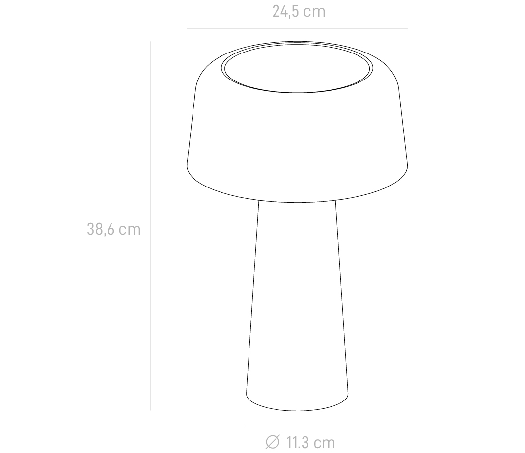 Eva es una luminaria de mesa realizada en hierro y aluminio repujado, con luz bidireccional y dimmer para regular la intensidad.